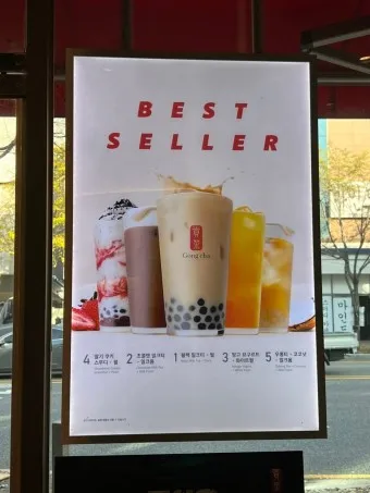 근데 재밌는 건 지역마다 선호도가 조금씩 다르다는 거예요. 강남역점에서는 타로밀크티가 1위를 차지했고, 홍대점에서는 흑당 버블티가 1위더라고요.